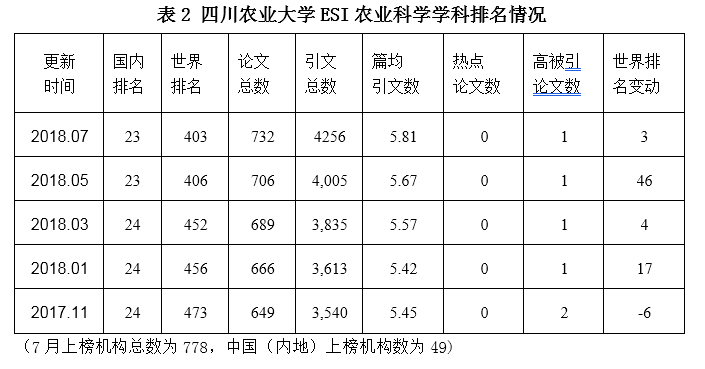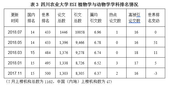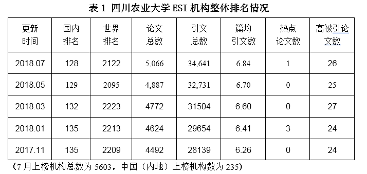 我校ESI机构整体排名和ESI学科领域全球排名动态快报(2018年7月)