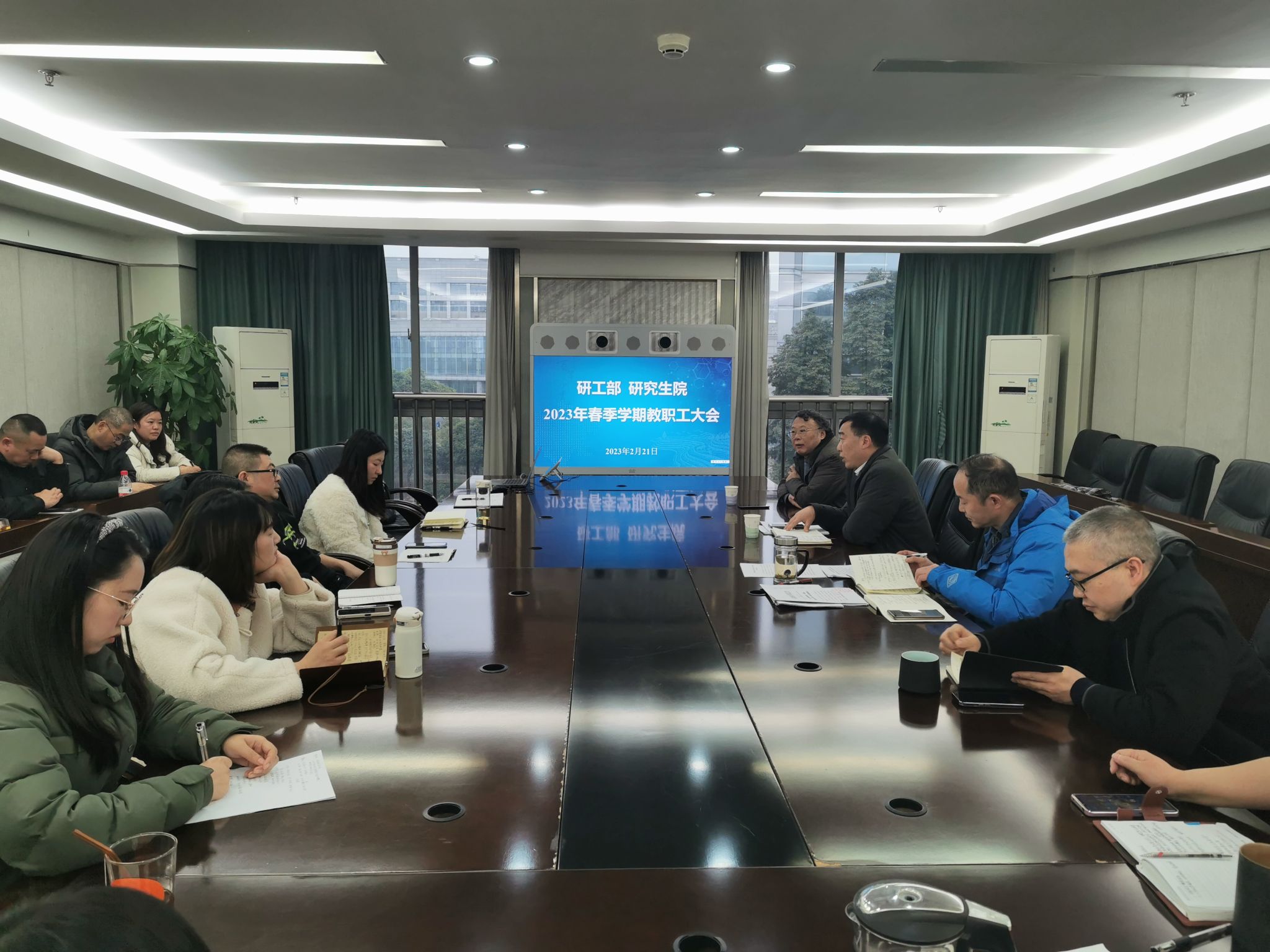 2月21日下午,研工部、研究生院在1教303会议室召开全体教职工大会,深入学习贯彻党的二十大精神和省委十二届二次全会精神,传达学习党委中心组(扩大)暨中层领导干部会议精神,谋划部署2023年重点工作。会议由研工部部长李武生主持。