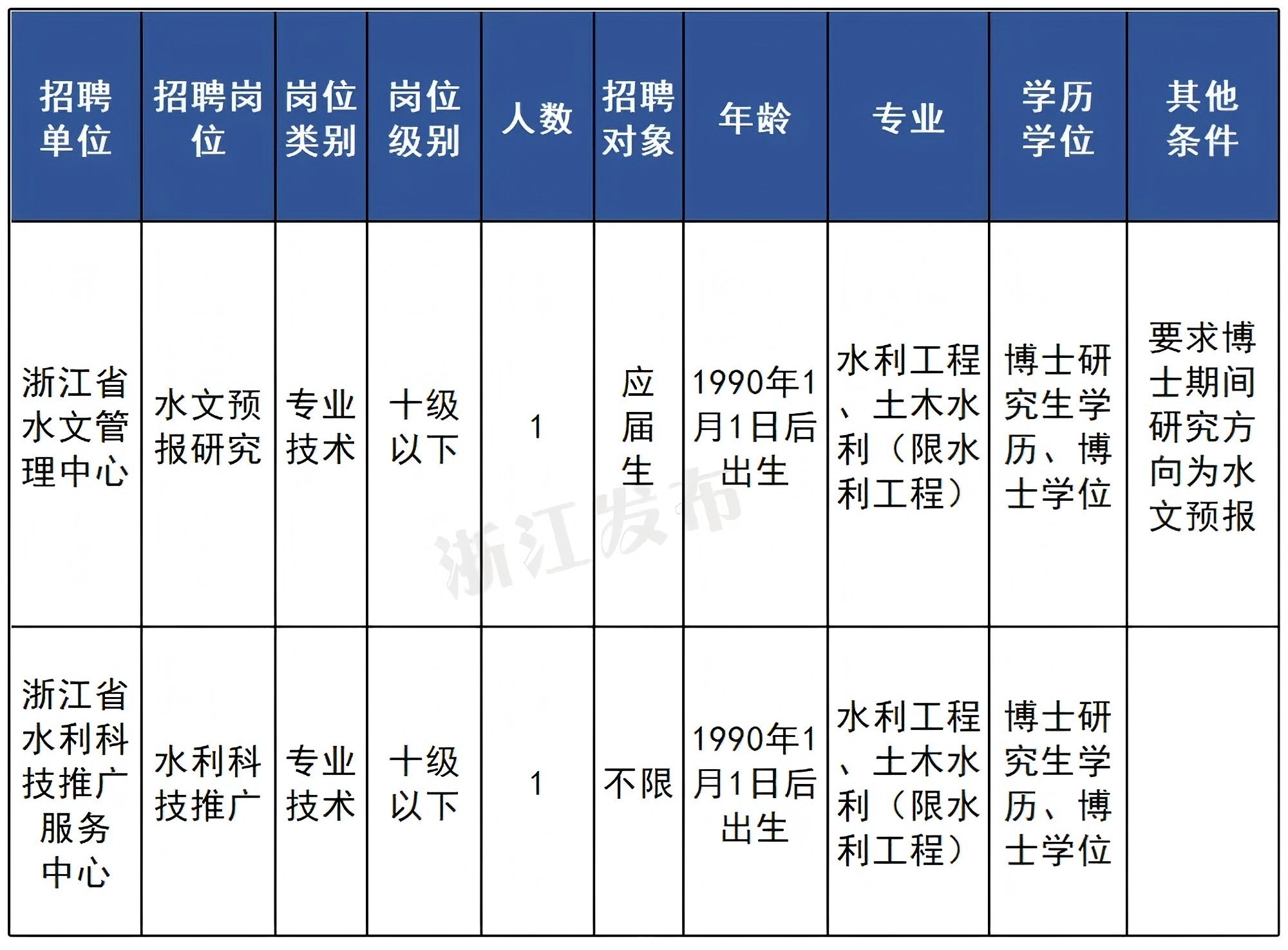 浙江省水利科技推广服务中心:公益二类事业单位,机构规格相当于正处级,经费自理。