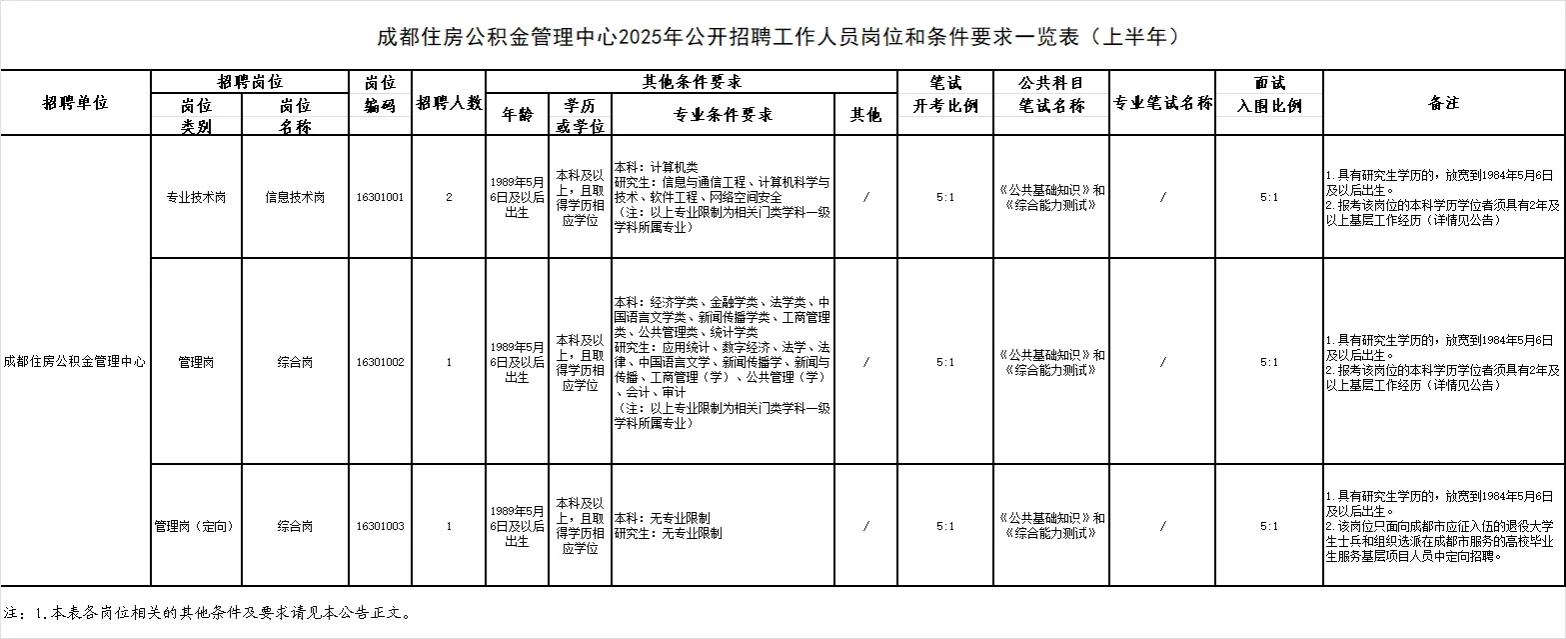 招聘岗位及名额:成都住房公积金管理中心面向社会公开招聘工作人员4名。