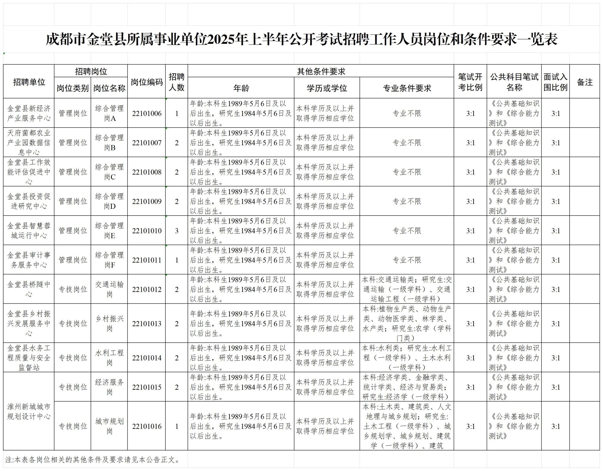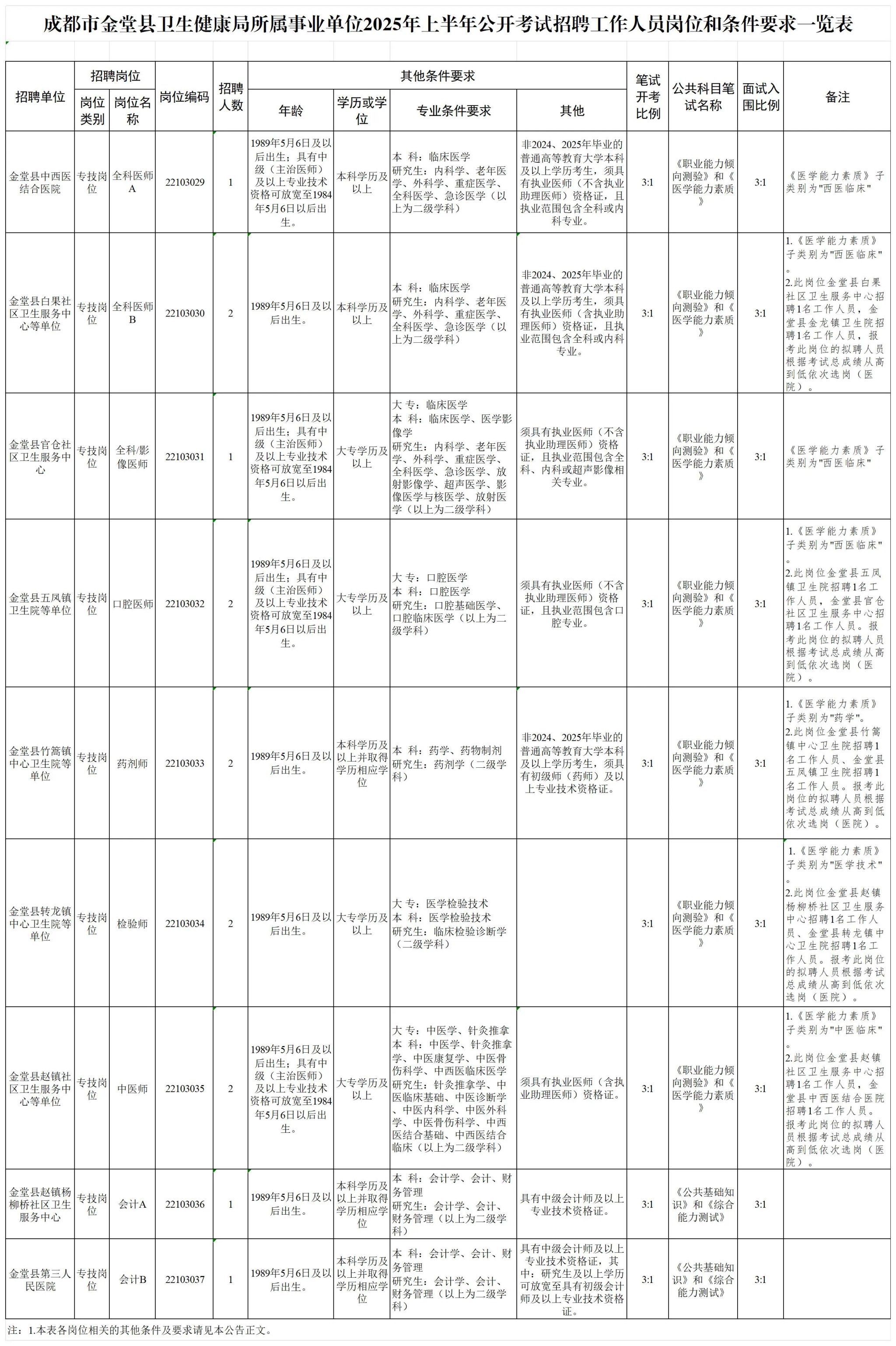 招聘岗位及名额:金堂县面向社会公开招聘工作人员20名;金堂县卫生健康局面向社会公开招聘工作人员14名。