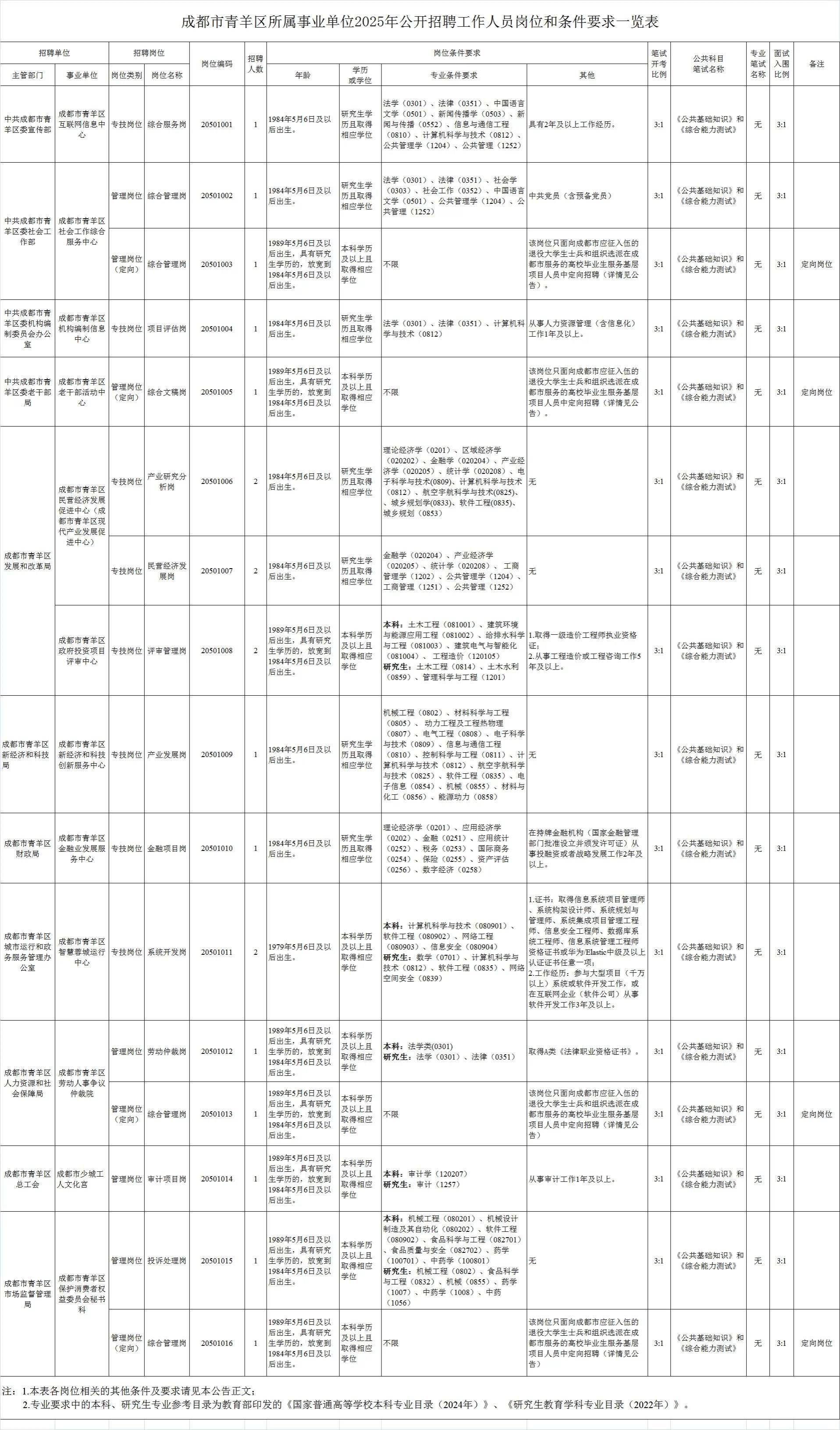 招聘岗位及名额:成都市城市管理委员会所属3家事业单位拟面向社会公开招聘工作人员17名。