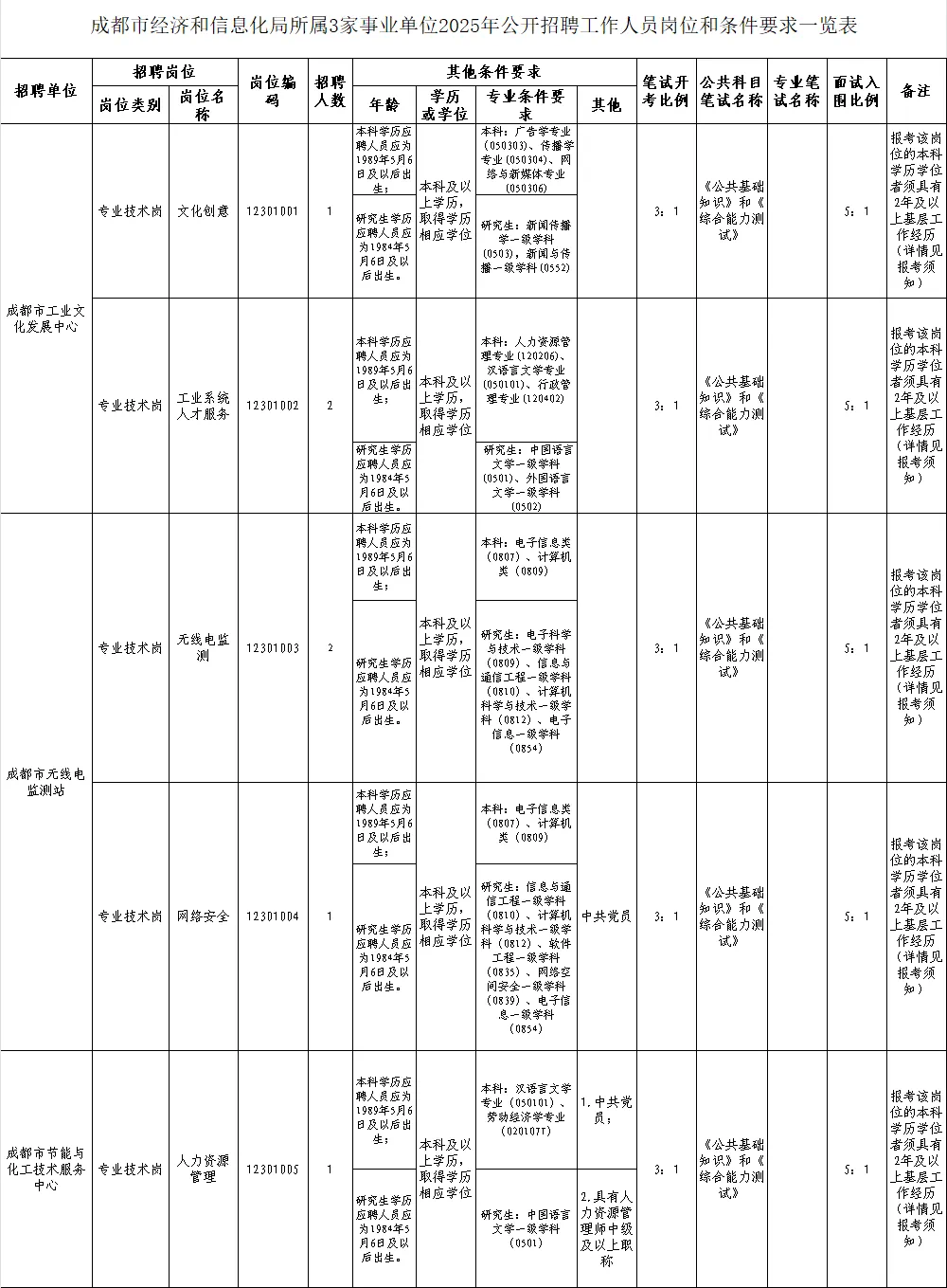招聘岗位及名额:成都市经济和信息化局所属3家事业单位面向社会公开招聘工作人员7名。