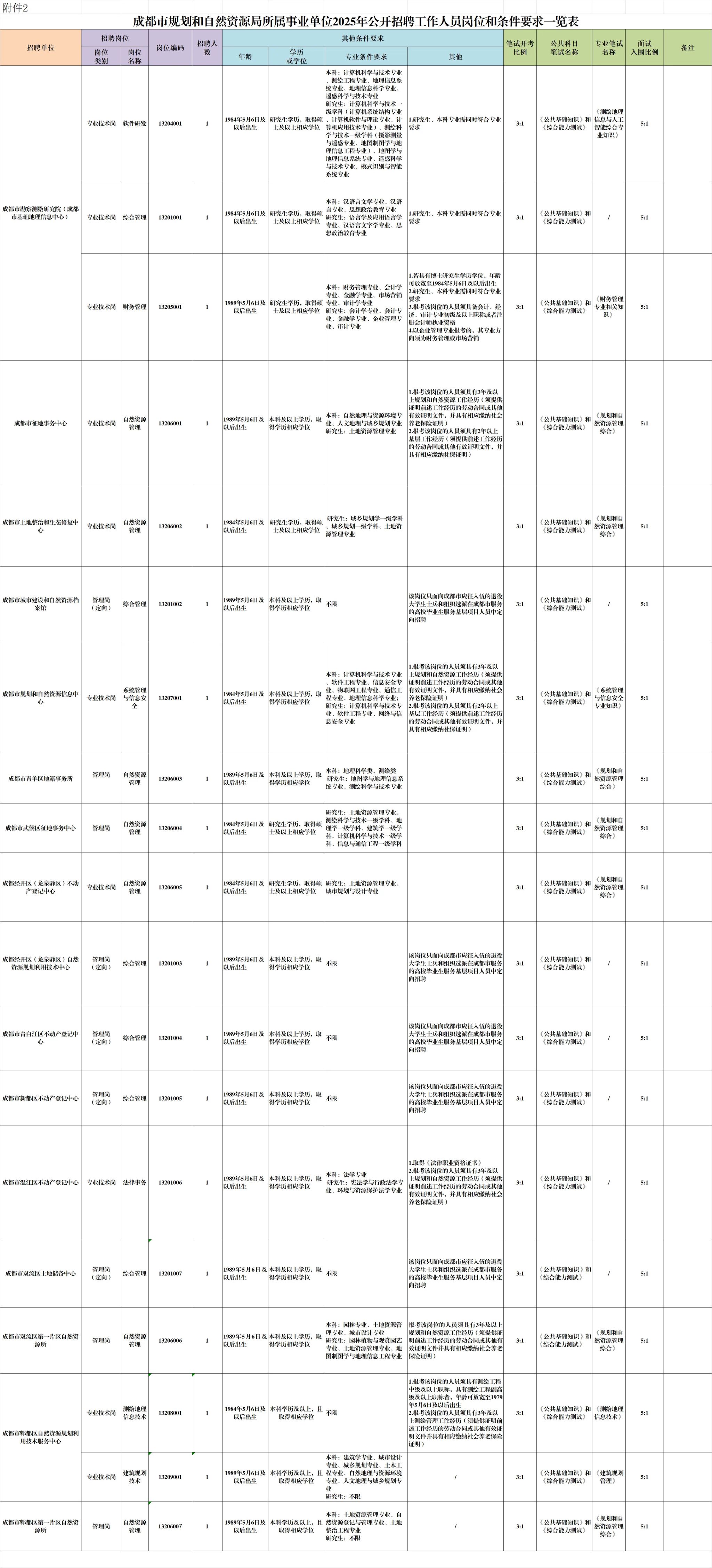 招聘岗位及名额:成都市规划和自然资源局所属事业单位面向社会公开招聘工作人员19名。