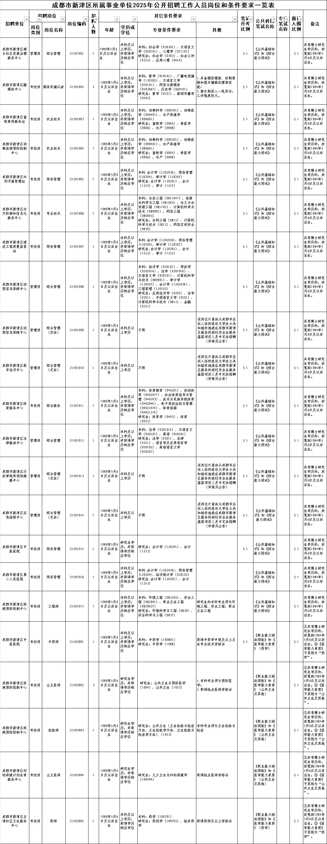 招聘岗位及名额:成都市新津区面向社会公开招聘工作人员25名。