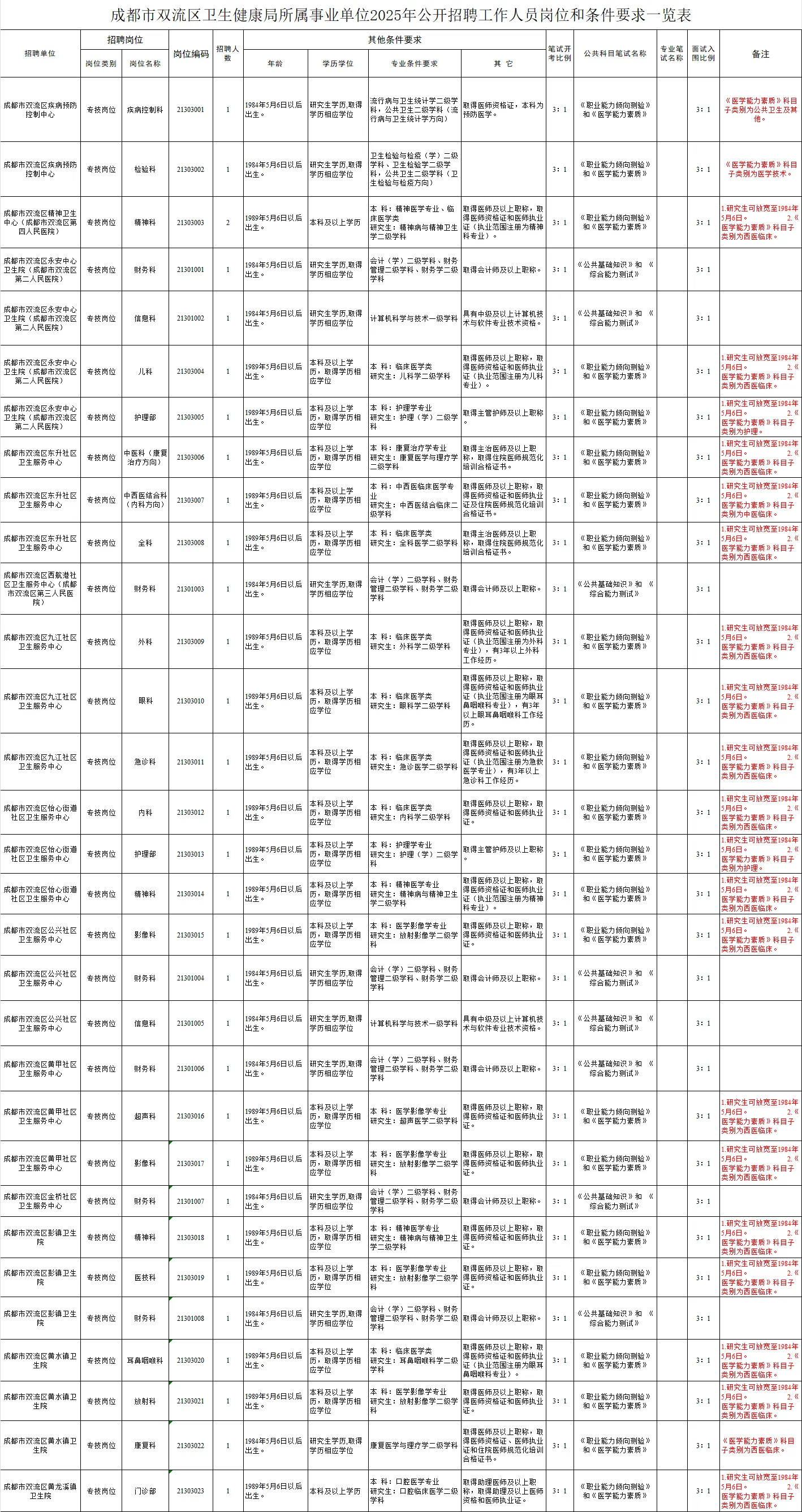 招聘岗位及名额:成都市双流区卫生健康局所属事业单位面向社会公开招聘工作人员32名。