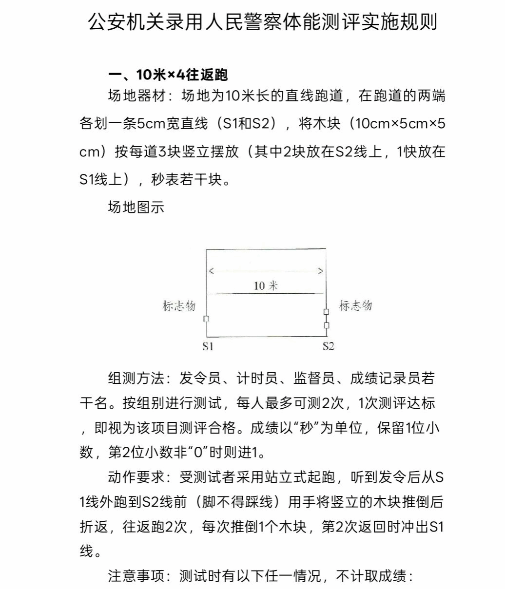 4.笔试与心理测评结束后,将立即组织体能测评,具体安排以现场通知为准。考生务必合理安排着装,充分做好体能测评准备,持本人二代居民身份证和准考证参加体能测评。