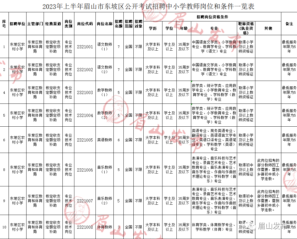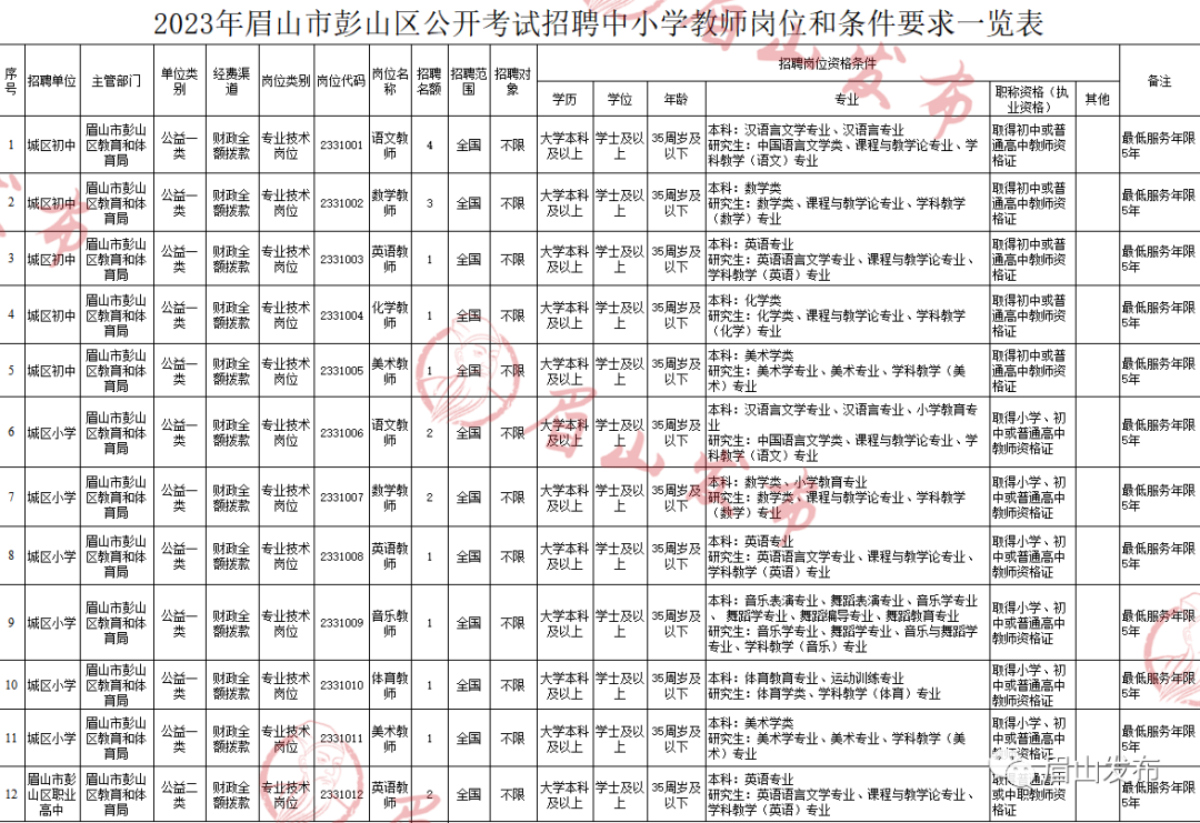 根据四川省人力资源和社会保障厅、四川省教育厅《开云手机端·官方版在线做好2023年全省面向社会公开考试招聘中小学教师工作的通知》(川人社函〔2023〕126号)等文件精神,我市2023年上半年面向社会公开考试招聘中小学教师177名,其中:东坡区50名、彭山区20名、仁寿县33名、洪雅县30名、丹棱县32名、青神县12名。