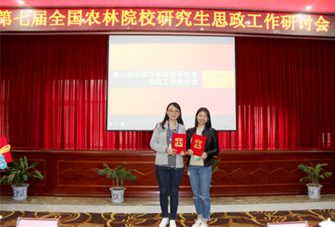 本次研讨会表彰了2017年度全国农林院校研究生思政教育及管理工作先进个人,评选了优秀参会论文和案例。我校李阳洋和李玲老师获得“全国农林院校研究生思政教育及管理工作先进个人”荣誉称号。李阳洋老师提交的《浅析网络圈群中研究生思想政治教育工作》获得优秀论文二等奖。会议最后还确定了将由沈阳农业大学举办下届研讨会。
