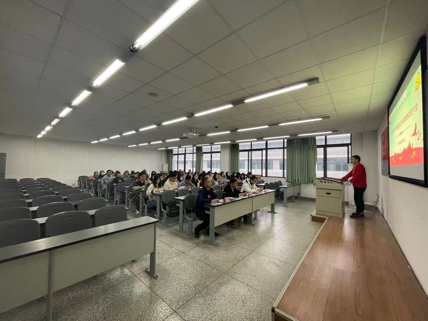 杨世义以党课的形式对全体学生进行动员。他为同学们解读了毛泽东1942年经典报告---《如何研究中共党史》,阐明了毛泽东对于研究党史的思想对今天党史学习的指导意义,他要求全体同学要善学善用、乐学乐用,真正做到学好党史,学出成果。