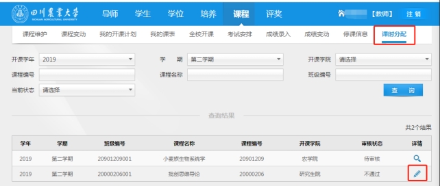 3、提交后由开课单位审核, 通过后生效,审核不通过则驳回至教师重新提交。