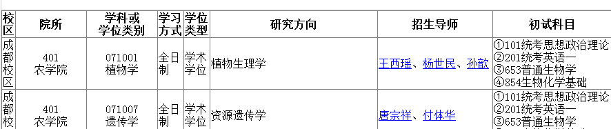 1、硕士招生专业目录:http://yz.sicau.edu.cn/zyml/zymls.aspx,也可通过研究生院网页中的招生----硕士招生----专业目录进入。
